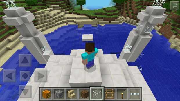 3. Empiece colocando un polo centro de cerca de 2 * 2 bloques para que tienes un punto de centro / punto de partida de su structure.when llegar a la superficie del agua mediante la colocación de estos bloques, cambiar a modo volar y crear una isla de cualquier u bloques como. quería que parece está flotando por lo que utilizar bloques de vidrio.