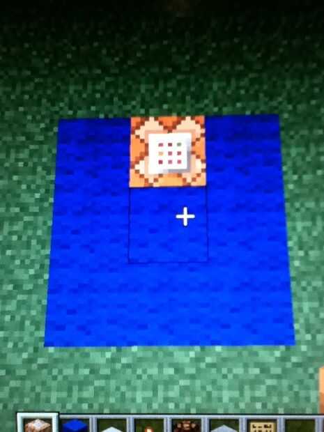 Corte un 9 x 9 pulgadas cuadradas el suelo. Colocar bloque de un borde con el comando block y todos los demás azul de lana. ¡ Pero no toque el bloque de comando!