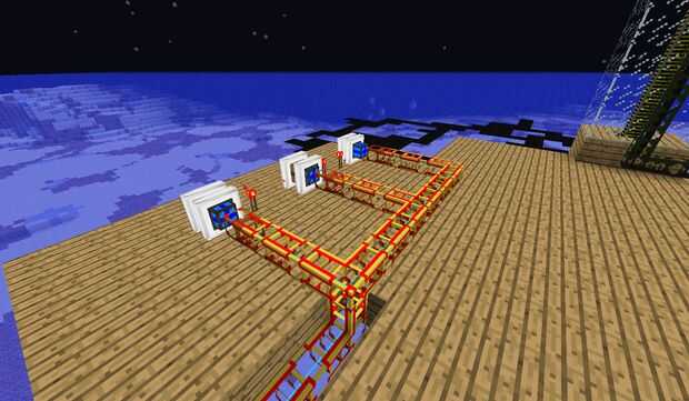 Saber que oro tubo conductor establecimos anteriormente? Ahora vamos a añadir algo de poder a las líneas para empezar a refinar gasolina. Conducir las líneas de su ritmo de trabajo y establecer algunos motores de combustión. Tres motores de combustión son una fuente bastante adecuada de energía para dos refinerías correr a un ritmo cómodo, pero puede Agregar o restar motores a combustión. Para conectar estos motores de combustión a sus oro tubos conductores, coloque tubos conductores madera atados al extremo del motor de combustión que parece una cosa de madera tip... Realmente no puedo describir mejor, ver las fotos para conseguir la idea correcta. Después de hecho esto, necesitarás algo de agua para enfriar los motores de combustión, y necesita mucho de él. Puede conseguir agua de hacer una piscina de agua que mida 3 manzanas por 3 cuadras y está a una cuadra de alto. Poner la bomba en cualquier lugar por encima de este grupo y se suministra agua infinita, como el agua de la piscina inmediatamente reponer. Esta agua bombeada a tanques, tanque a aproximadamente 10 cuadras son lo suficientemente adecuados para el enfriamiento de tres motores de combustión. Potencia de esta bomba al igual que en cuanto a la bomba de pozo de petróleo, con cuatro motores de redstone y cuentan con impermeables tubos llevan el agua hacia los tanques mencionados anteriormente. Dos de estas piscinas es necesario para los tres motores de combustión, a menos que quieras su refinería para volar debido a insuficiente refrigeración para los motores de combustión. También tienen una línea vienen de sus refinerías y para sus motores que llevarán el combustible refinado para encender sus motores. Durante el tiempo que usted puede alimentar sus motores de combustión de aceite crudo, que no es un plan de largo plazo gran. Motores de combustión en crudo combustible queman más caliente y por lo tanto sobrecalentamiento mucho más rápido y utilizan más combustible. Tan pronto como sea posible, empezar a correr sus motores de combustión de combustible producido por la refinería está impulsando.