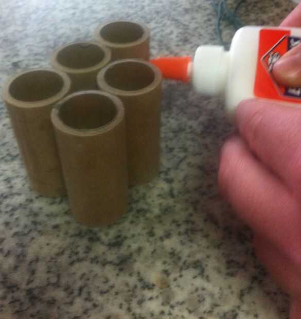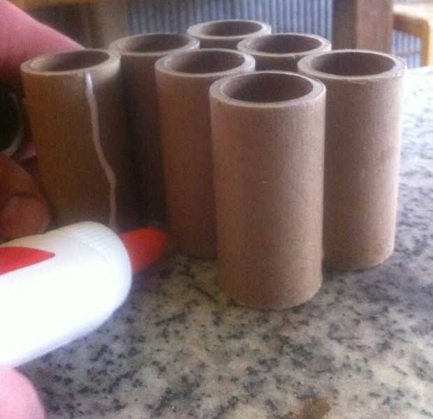 Unir tubos de cartón por uniéndolas con una línea fina de pegamento. Deje que la cola seque.