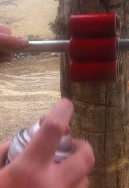 Después el pegamento haya secado la pintura tubos de cartón con pintura roja.