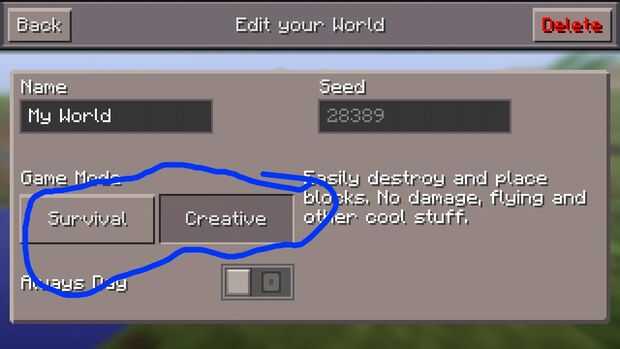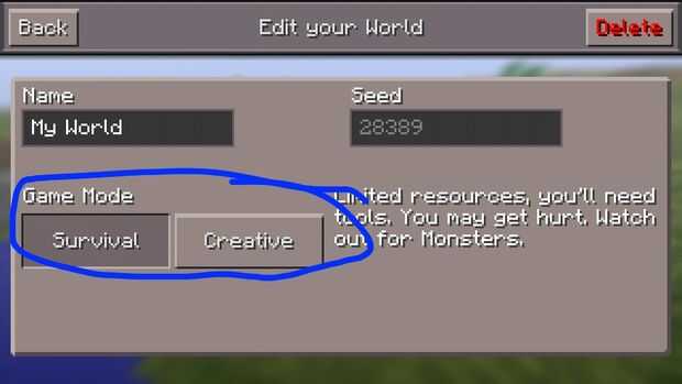 Volver a su registro de mundo y pulse el icono Editar al lado de su mundo. cambio de creative para la supervivencia.