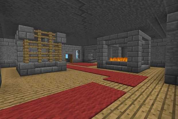 Esto tristemente no está acabado, pero este es mi primer intento en un trono grande, mi nuevo proyecto será mejor te lo aseguro. El salón del trono reemplaza el duro empedrado con un piso duro y rígido. La escalera conduce a las habitaciones de muchos que hasta ahora no existen: P