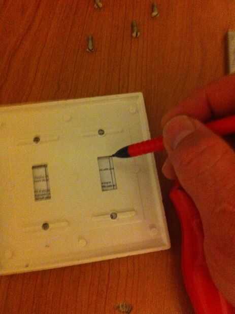 Trazar la luz cuadrada cambiar agujeros y agujeros circulares en la parte posterior de la tarjeta de regalo. Si desea, podría cinta la tarjeta a la placa. Utilicé un lápiz mecánico.