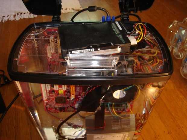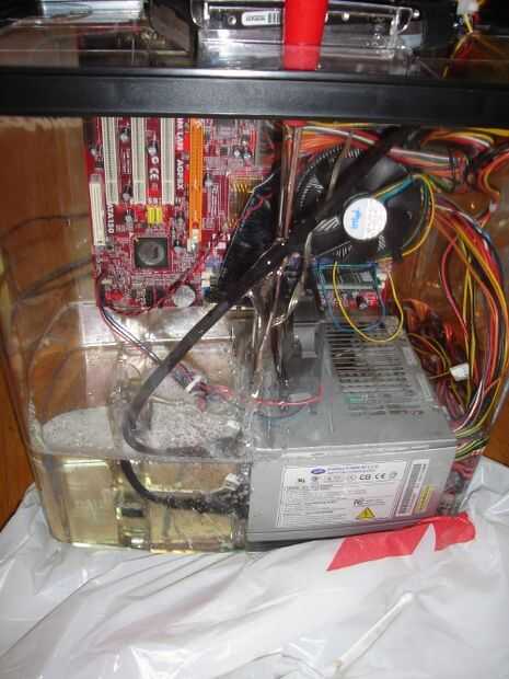 The following link is a tutorial on how to submerge a PC in an aquarium filled with mineral oil. Los resultados fueron bastante sorprendentes teniendo en cuenta el equipo que se utiliza es un servidor para el UT2004 y CS:S. funciona a 120 grados F y es totalmente silencioso muerto. Este es un divertido proyecto, y es probablemente mejor si utilizas piezas ligeramente mayores o repuestas. Si te gusta el artículo y vídeo, digg esto!