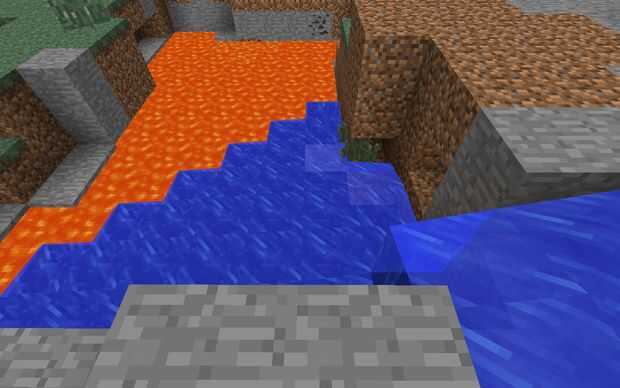 3. Soltar el cubo de agua por lo que fluye en la lava.