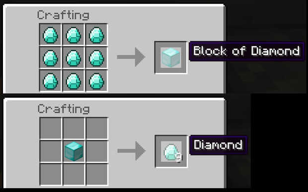 • Utilizar como con cualquier material para hacer armas y herramientas de diamante