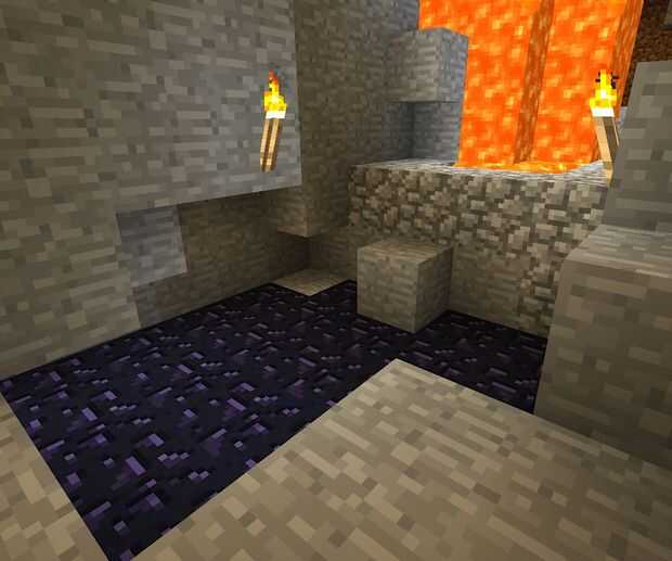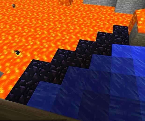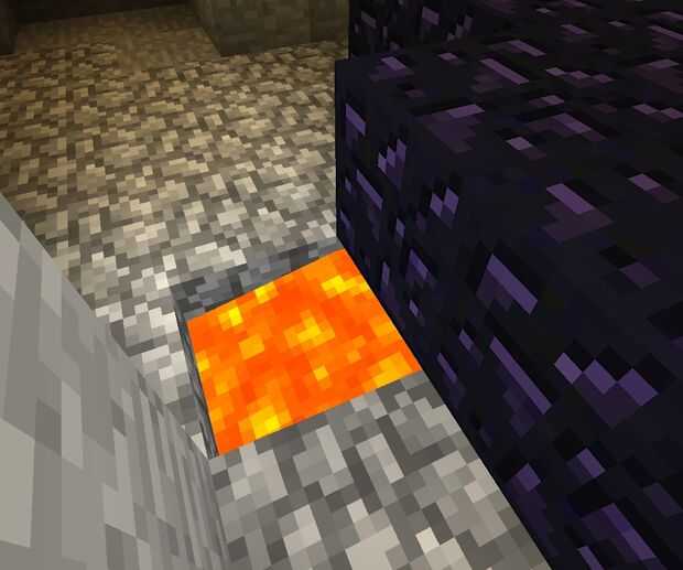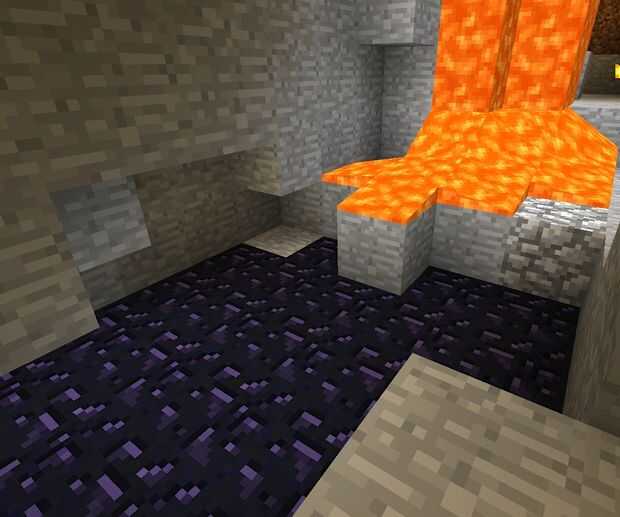 - Desde que se creó por el agua que fluye en la lava, incluso si eres capaz de borrar la lava en la parte superior, seguramente habrá algunos por debajo de lo que hace difícil a la mía. Si usted mina la obsidiana y lava por debajo, destruirá la pieza de obsidiana que a minado.