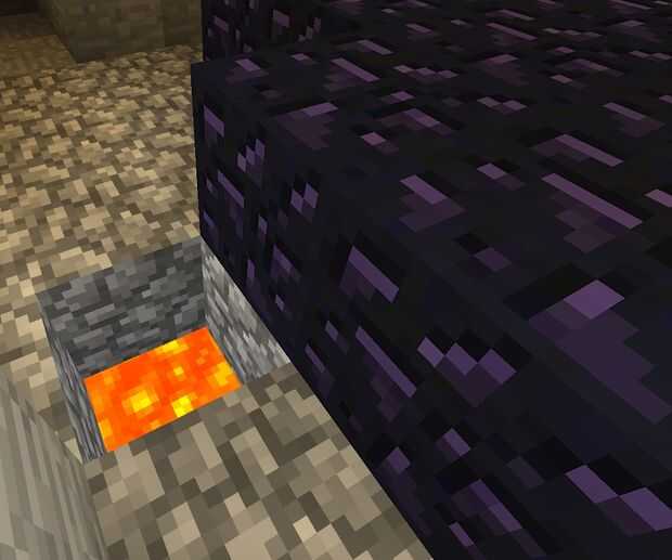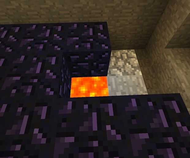 - Una vez allí, destruir el bloque en el borde que revela la lava debajo de la obsidiana.