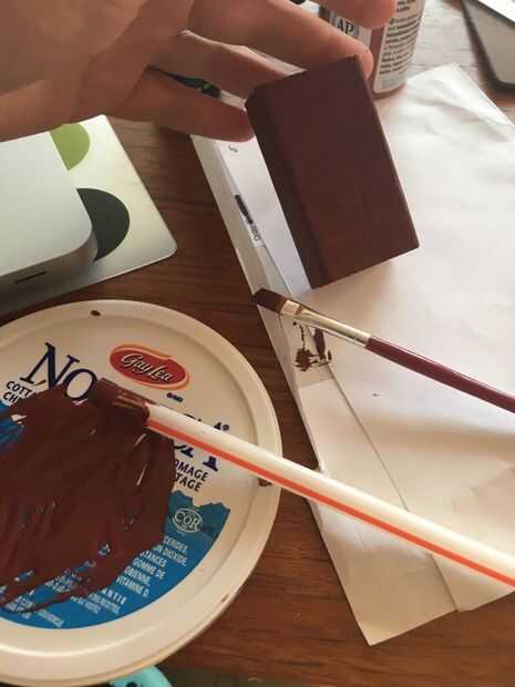 Luego mezclar la pintura para hacer un marrón color y llegar a la pintura! Poner una capa fina en y usted debe obtener cobertura incluso con dos capas.