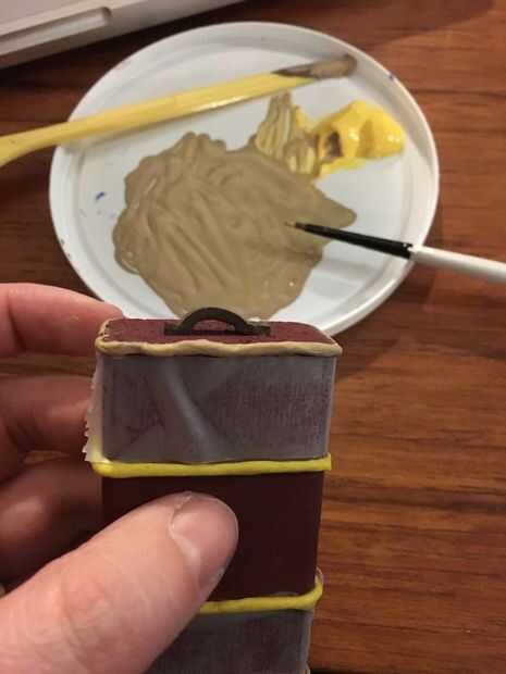 A continuación, mezclar la pintura para hacer un bronceado de color y pintar las bandas. Usé cinta scotch para asegurarse de que no accidentalmente pinto la parte marrón del tronco. Deja que todo seque.