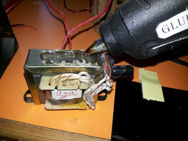 La alimentación al ventilador del pegamento y a los cables del ventilador a alambres de suministro por soldadura.