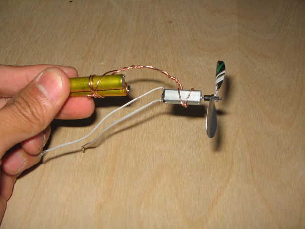 cortado del pop puede hacer un hélices. hacer un pequeño hueco en el centro de las hélices y conectar al motor eléctrico