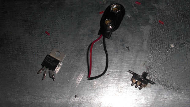Bueno, aquí llegamos a la última y más difícil parte de soldadura. Será necesario el mencionado 9v interruptor, enchufe y regulador de voltaje.