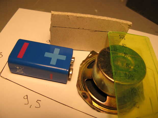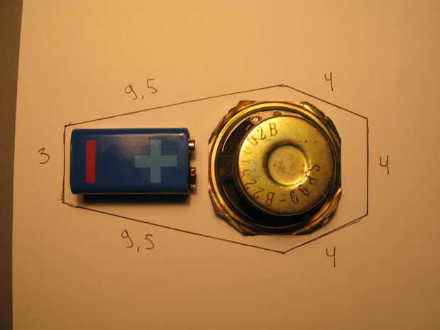 Entonces si, se han revisar su dibujo, altavoz y batería encaja en él. No te olvides que la cartulina es gruesa, así debe haber un boquete pequeño entre el altavoz / batería y las líneas de su dibujo. PIC.2