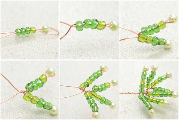 2 º, refiérase al paso 1 para hacer otras ramas, pero se notó que cada rama en esta capa consiste en una perla y cuentas verdes de 4-6;