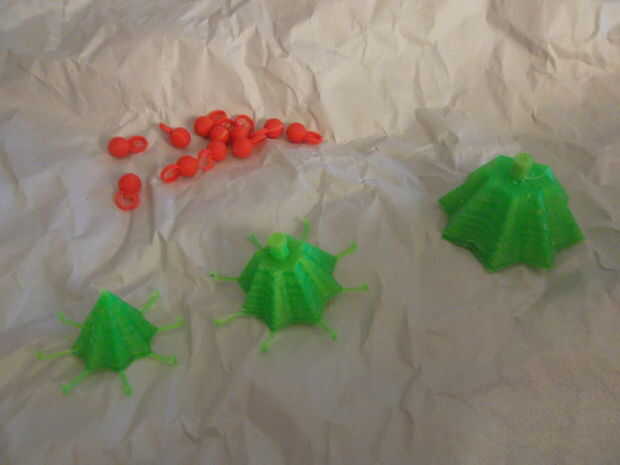Las secciones de tres árbol son aproximadamente 1 hora y 15 minutos de una impresión. Los ornamentos son un 6-9 minutos impresión. Estas impresiones fueron creadas en el MakerBot Replicator 2. Los tiempos y precisión dependen de la impresora sí mismo.