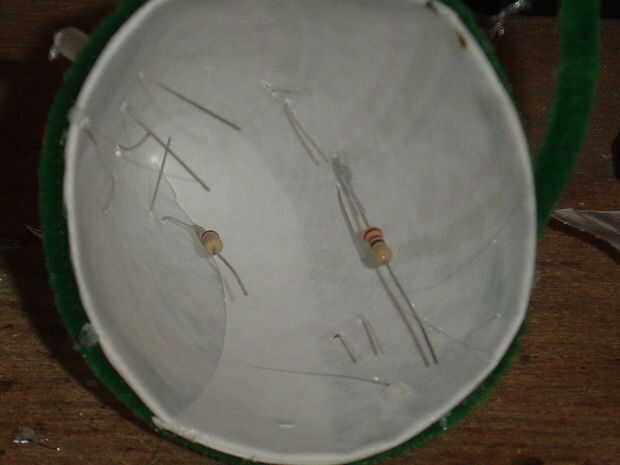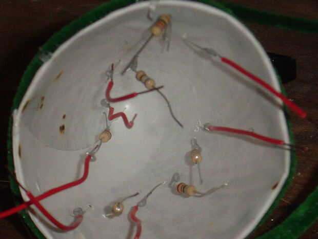 Primero, yo muy estaño los cables de las resistencias. Luego había soldado una resistencia a la pata positiva de cada LED.