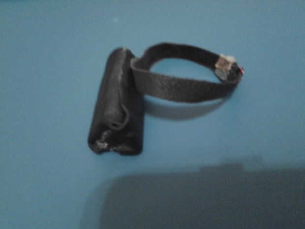 Primero voy a explicar cómo hice la aljaba. Tomé 3 30, 30 granadas y eléctrico grabado les juntos entonces pegados de cuero encima y hecho una correa de cuero con hebilla de trabajo, con alambre y lata.