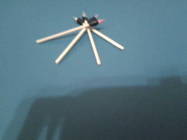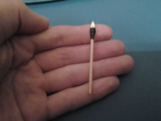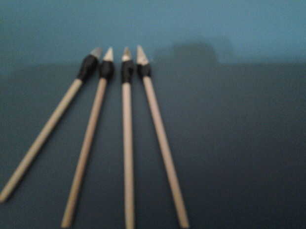 Para las flechas cortar los extremos de palillos de dientes y cortar un extremo aproximadamente medio centímetro y se deslizó un pedazo de lata que ha cortado. Luego enrollé una pieza delgada de cinta aislante alrededor de él.