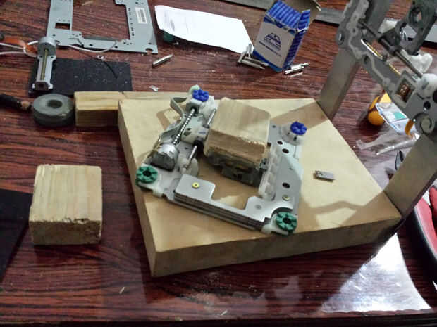 Para esta parte solo necesitan una plataforma base y dos pilares. Hice la base de madera y pilares son de aluminio. Ahora simplemente Atornille la base de madera con sus pilares como se muestra en la figura primera.
