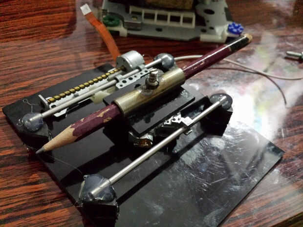 Coloque el eje X en los pilares y el eje Y sobre la base de madera como se muestra en las figuras. Usé pegamento para montar el eje. Asegúrese de que todos los ejes son exactamente perpendiculares entre sí, deben ser en ángulo recto.