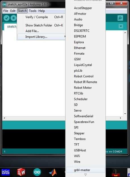2. después de descargar la biblioteca Grbl, tienes que hacer clic el dibujo--> import--> Biblioteca agregar biblioteca en el software de Arduino y seleccione el archivo zip que acabas de descargar.