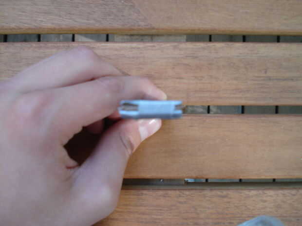 Ahora para terminar, la cinta de las piezas de cartón junto a los pequeños pedazos de cartón encarando juntos. Asegúrese de que cinta a los lados. Para utilizar el golpe en uno de los lados y se escuchará un sonido similar a la de un kazoo. La url más abajo le llevará a un video de mi jugando el kazoo.
