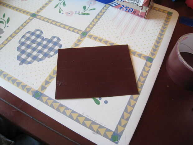 -Cortar un cuadrado / rectángulo de la tarjeta de tablero con las tijeras de cualquier tamaño que desee. (Mina era 4 pulgadas por 5 in.)