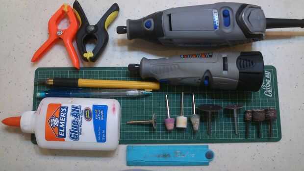 Para este proyecto, me sentí orgulloso con una nueva adquisición - una Dremel 3000. A diferencia de la mini roja, no es necesario esperar para una recarga de 6 horas antes de utilizar la herramienta. Pero por supuesto, no hay nada como al ácaro mini de muy baja velocidad detalles de puestos de trabajo.