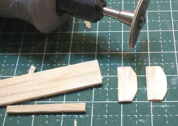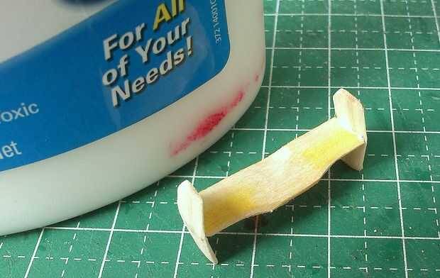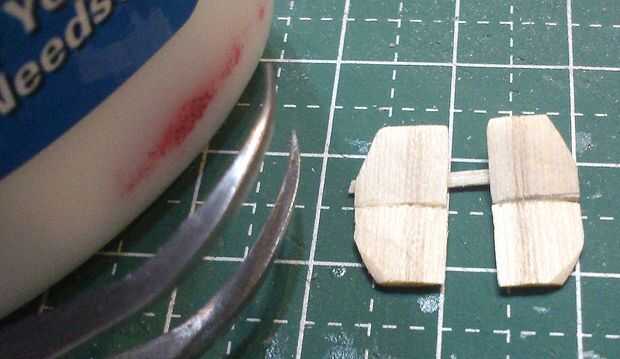 Después de formar los timones, fue había cortado por la mitad, había pegado en un ángulo y establece en seco. Los timones del finales estaban pegados en ambos extremos del estabilizador horizontal.