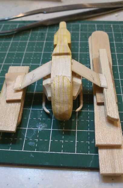 Las alas delanteras fueron pegadas en el borde del fuselaje justo debajo de la cabina del piloto. Mini pistola fueron pegados en los extremos del ala y los receptores mini pistola por debajo de las alas delanteras. Los barriles del arma mini Subalares fueron agregados a los extremos de los receptores de la mini gun.