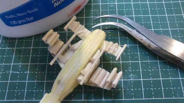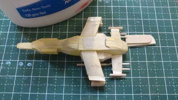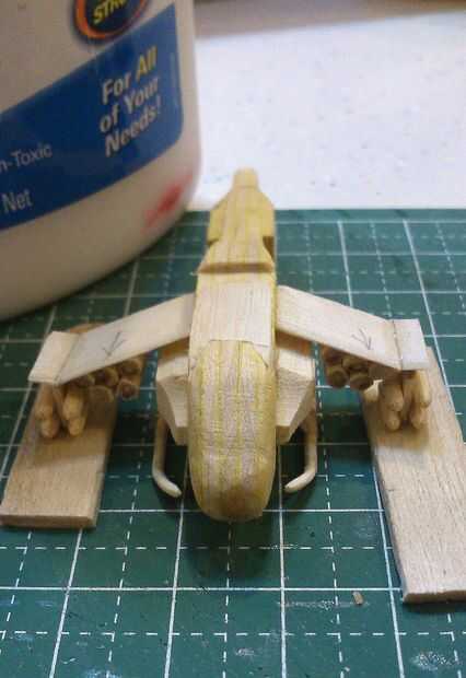 En primer lugar, la bahía de armas alerón trasero estaban pegados al fuselaje. Entonces, se instalaron las vainas del cohete de cinco (5) (por cada ala) . Finalmente, la Asamblea de hellfire fue pegado en la punta de la ala trasera.