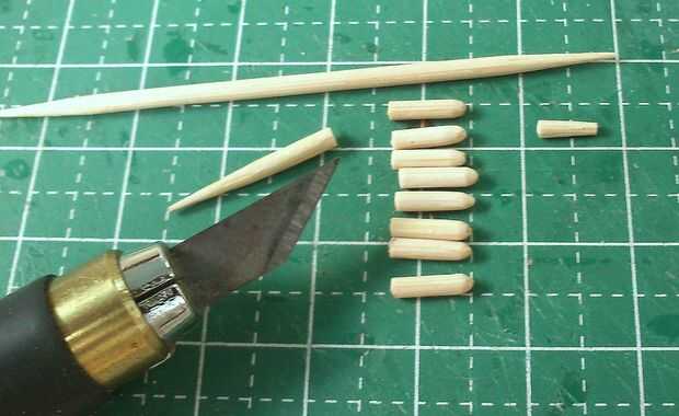 Las varias cargas de armas eran de la caja de 'desechos'... Palillos para el Hellfire y barriles de la ametralladoray agitadores del café repuesto hexagonal de las vainas del cohete. La ametralladora receptores y mount(s) del infierno eran también de repuesto, laminas de agitadores del café.