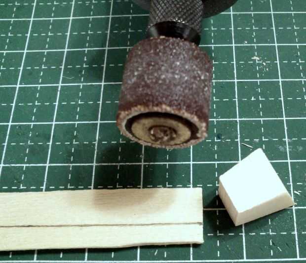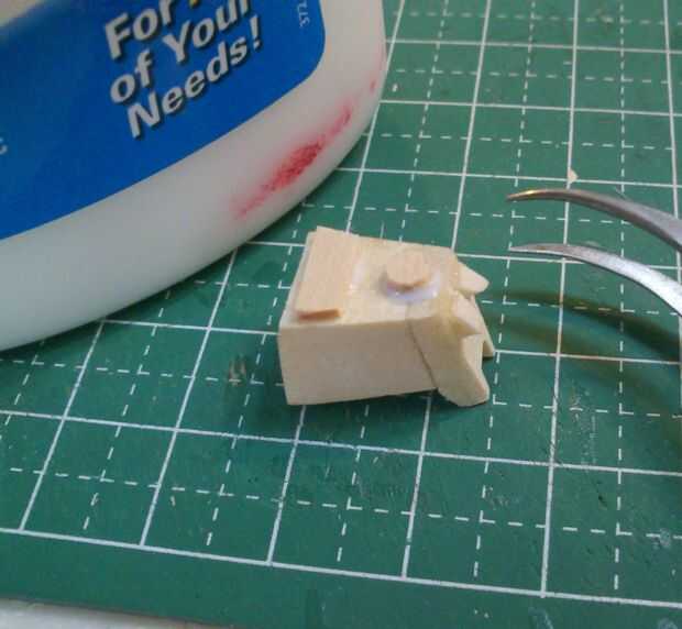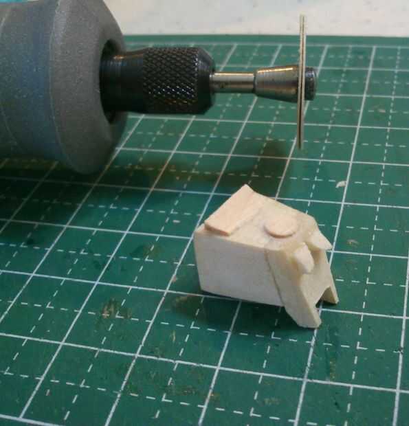 Pequeñas piezas para el comando vistas, escotilla de entrada/salida, mini láser blaster y conmoción cerebral Granada (y sus soportes) se cortaron de diversas partes de la caja de 'repuestos' y lijadas a su forma final utilizando un accesorio de la lijadora de disco fino.