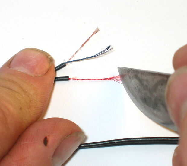 Raspar la laca de las puntas de los cables.