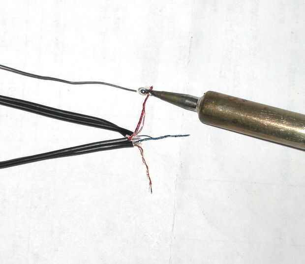 Soldar los cables correspondientes entre sí. Si tienes algunos resina núcleo de soldadura y sin soldadura de hierro, un fósforo o un encendedor funciona casi así. Pero si tienes soldadura usted probablemente tendrá un soldador demasiado.