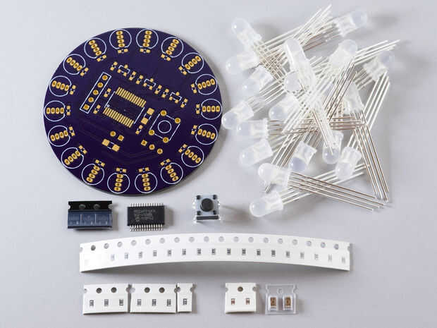 - 18 x LED Tricolor (cátodo común) (SparkFun COM-09264 debe ser idénticos) http://www.sparkfun.com/products/9264