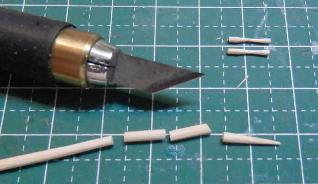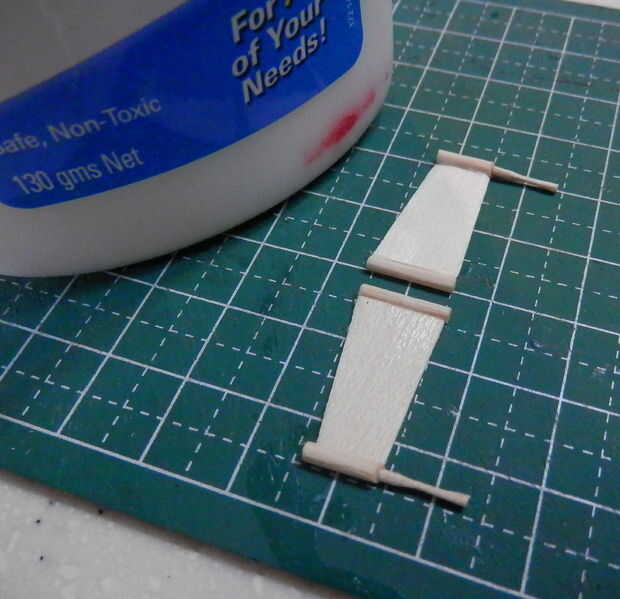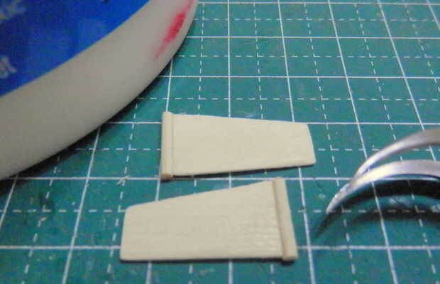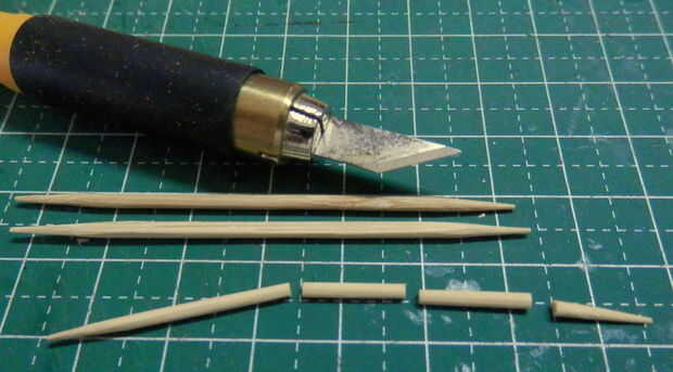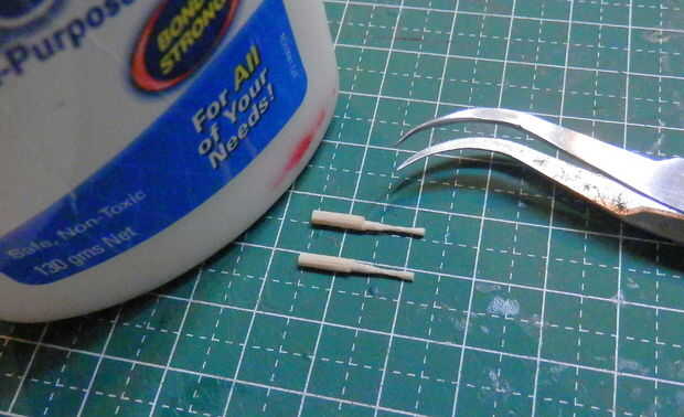 Los barriles del cañón de iones fueron en forma de palillos de dientes utilizando un accesorio de lijadora de tambor fino. Los receptores del cañón de iones fueron cortados de palillos de dientes redondos similares a los mecanismos de pivote. Los cañones de iones fueron pegados a los receptores y deja secar. Los cañones de iones terminado entonces fueron pegados en el extremo de las alas S-hoja para completar los conjuntos del ala.