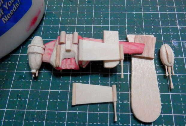 El Monte S-hoja del ala fue formado de un palito 'restos' de la caja de repuestos.