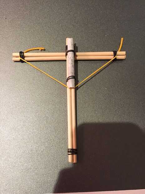 una pequeña ballesta plegable hecha de palitos y palillos de dientes. Voy a hacer un instructable si suficiente gente pide.