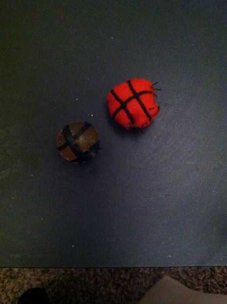 Terciopelo naranja, cortar un pequeño círculo hacia fuera (más grande que el tamaño del aro), el diseño de la bola de la cesta en hilo de coser