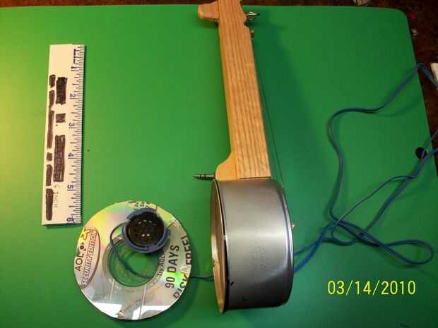 Cámara de resonador pasó a ser un contenedor de comida de perro pero podría usarse cualquier caja redonda. El material es aluminio y esy utilizar. Ver figura construcción para más detalles.