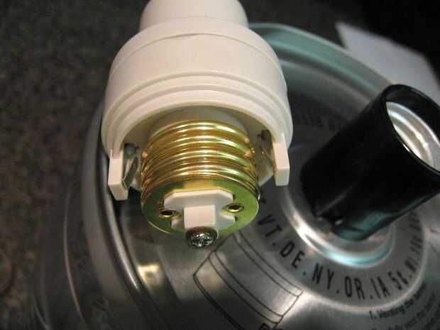 3. Empuje la lámina entre los puntos de contacto en el interruptor regulador de intensidad y la lámpara, asegúrese de que la hoja es suficiente para tocar el barril.