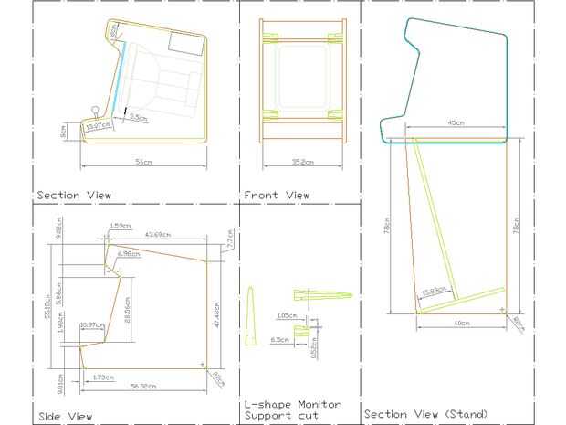 En primer lugar dibujé solamente la porción bartop, el hardware todo cabría en él, luego me di cuenta no tenía ningún lugar para ponerlo encima de, así que dibujé un stand para acompañar (esta parte es hueca)