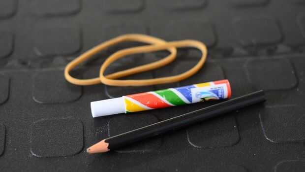 Luego recoger el cañón, el lápiz y las bandas de goma y vamos a montar el lanzador BB!