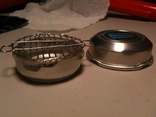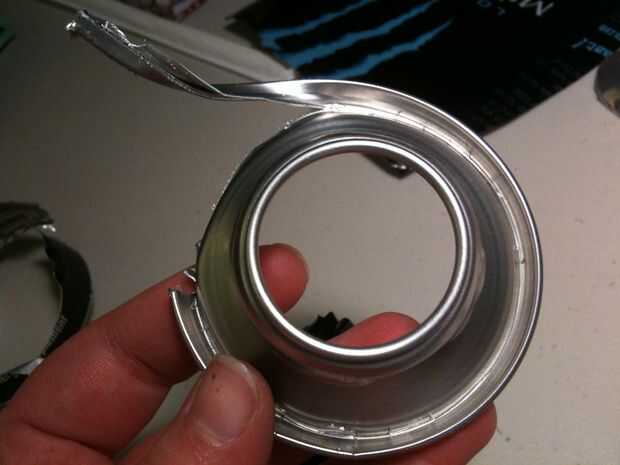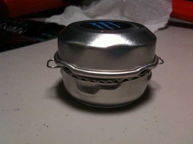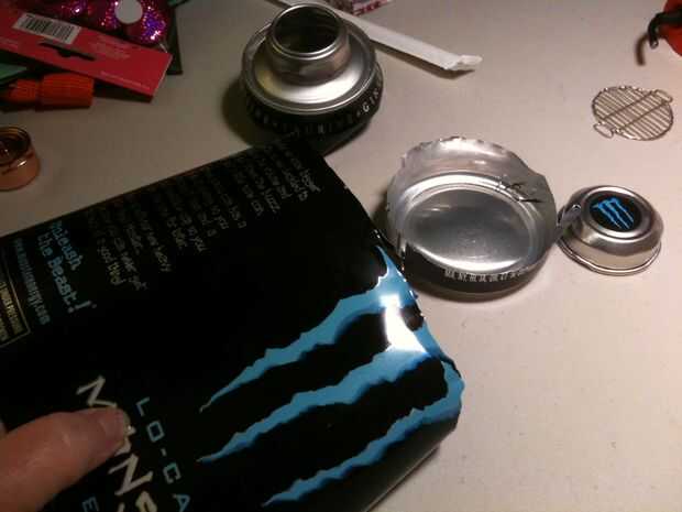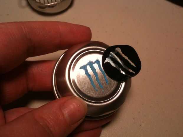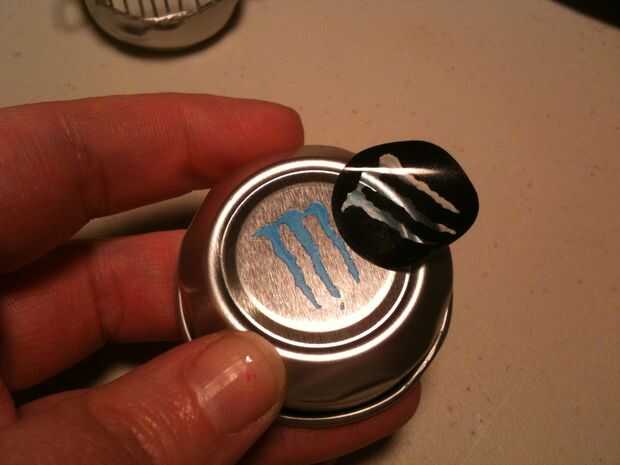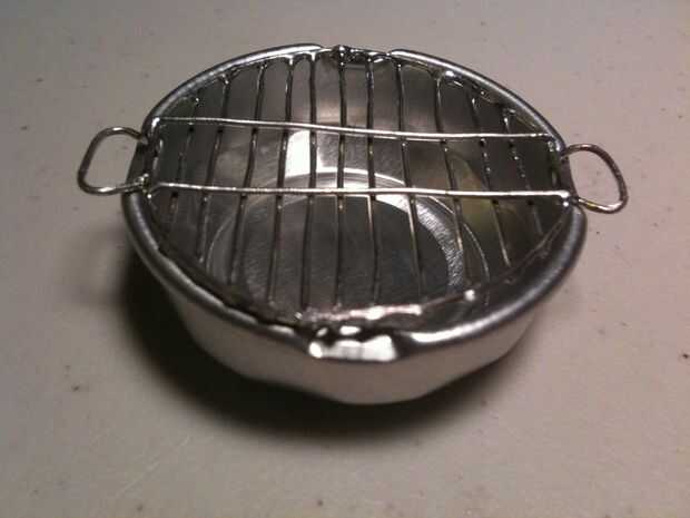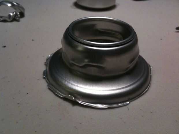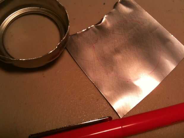 Cortar la parte superior de la lata con unas tijeras, luego marcar el borde superior, por encima del borde, con el cúter. Aprendí que cuando usted anota el aluminio, y utilice pinzas para separar el marcador, funciona bastante bien. :) Tan libre la parte superior de la lata, luego marcar alrededor de la abertura de la bebida para conseguir esa máxima-pieza libre, que será la parte inferior de la parrilla. La tapa es su... tapa.
