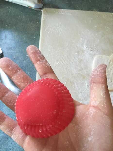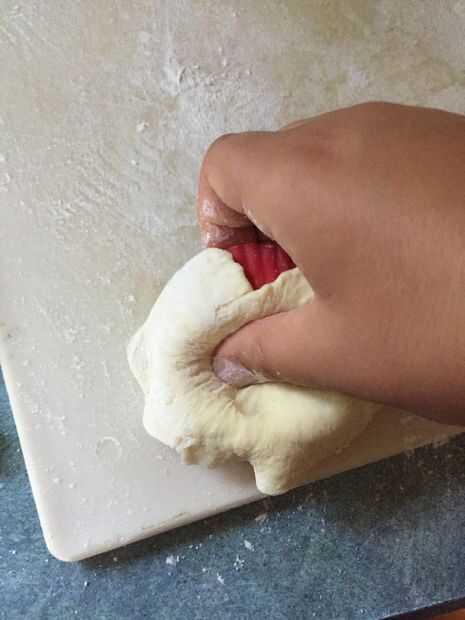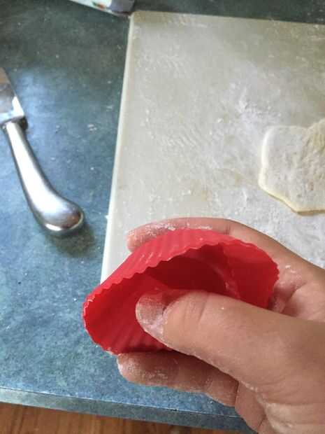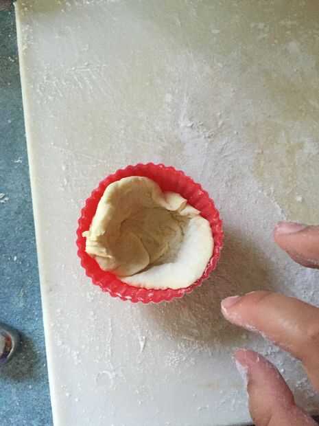 6. tomar el silicio cupcake relleno y vuelta adentro hacia fuera. 7. Coloque la masa en la parte superior y disponer que en su mayoría incluso en todos los lados. 8. luego flip el relleno y la masa en lugar de una vez. 9. aplastar la masa para ver un poco más si quieres.