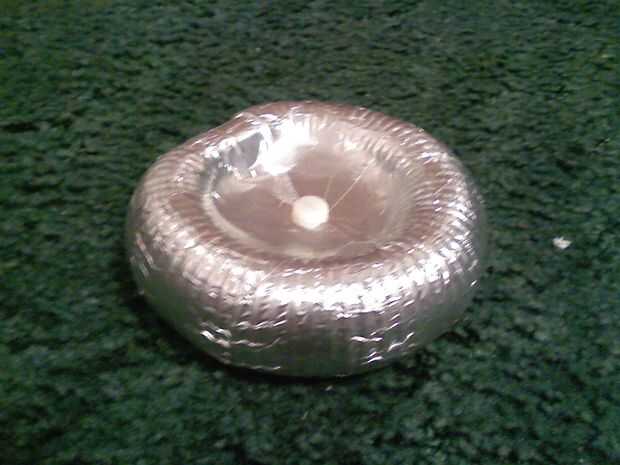pensé en comprar un toroide para poner en la parte superior de ella pero no voy a pagar 1 a 2 cien dólares por uno así que hice mi propio! Por lo que vas a tomar el 1 Ft de 2,5 pulgadas de drenaje tuberías y enrollamiento en sí mismo, por lo que debe ser en un círculo. Estirando un poco le permitirán algunos. Medir el interior diámetro del círculo y cortar un trozo de madera o de cartón y coloque en el centro del tubo. Se verá como una nave espacial cuando listo! Tome la cinta de aluminio plateado y empezar a grabar desde la parte inferior de la cartulina, alrededor del tubo, en la parte superior de la cartulina (¡ es muy pegajosa!). Conseguir la cinta tan suave como sea posible! Su más fácil dicho que hecho, pero es lo mejor que puedas! Una vez que se cubre con cinta de aluminio, taladro de un agujero en el centro, poner el perno nylon lanzó el orificio, coloque la arandela y la tuerca en el otro lado. Asegúrate de raspar el esmalte del alambre para hacer una buena conexión con el toroide.
