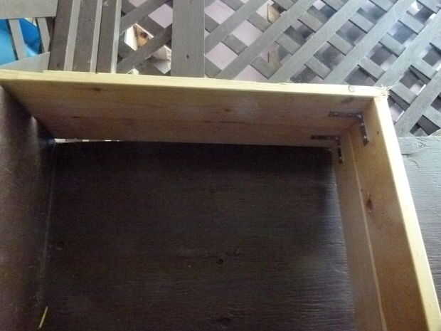 Corta 1 * 4s con el tamaño correcto y corchetes simples L. El tablero superior se sienta encima de la junta vertical, por lo que si hay alguna presión, iré a la vertical.